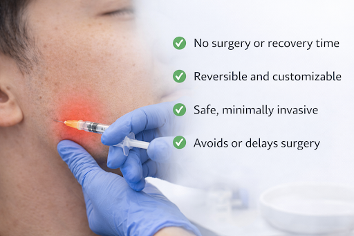Botox treatment offers several advantages for TMJ and jaw pain management. The minimally invasive procedure requires no surgery or recovery time—patients return to normal activities immediately. Results are reversible and customizable, allowing dose adjustments to achieve optimal outcomes. For many Singapore patients, Botox provides relief when conservative treatments prove insufficient, avoiding or delaying the need for surgical interventions.